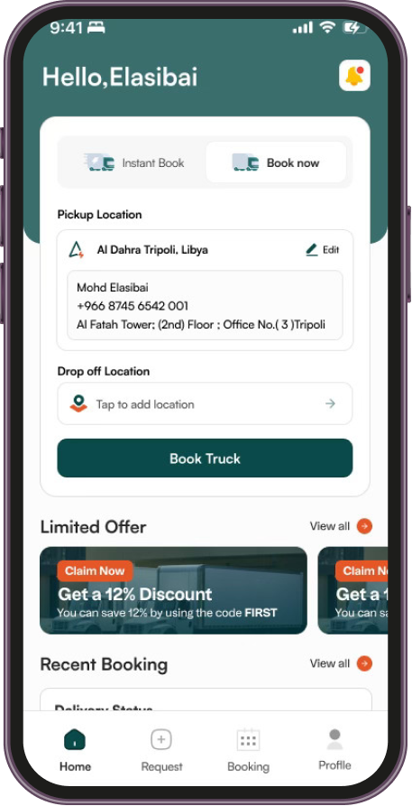 الطلبات تُعالَج في ثوانٍ، والعروض من السائقين توصل فوراً، بدون تأخير أو تعقيد في الخطوات.