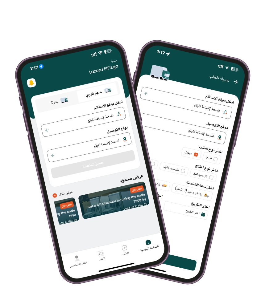 الخطوات بسيطة: تنشئ طلب وتحدّد نوع الشحنة ومكان الاستلام والتسليم، بعدها تصلك عروض من السائقين، تختار العرض المناسب، وتتابع شحنتك لحظة بلحظة إلى أن توصل.