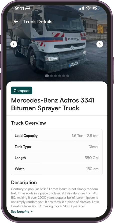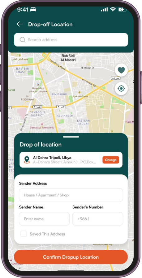 ودّع القلق على الشحنة. تقدر تشوف موقع الشاحنة ومسار الرحلة لحظة بلحظة من داخل التطبيق، إلى أن توصل الشحنة للوجهة.