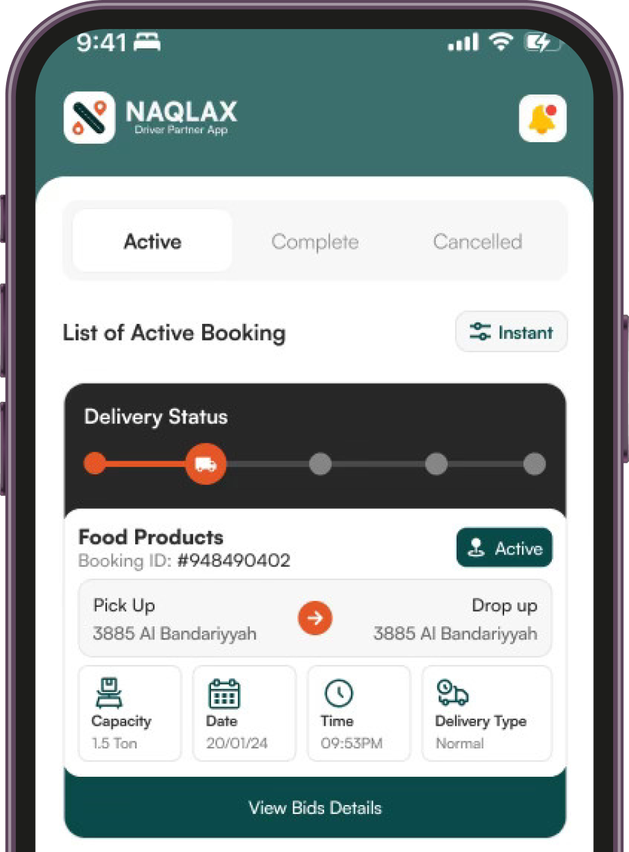 من أول مرة تفتح التطبيق، حتلقى الخطوات واضحة: إنشاء طلب، استلام العروض، اختيار السائق، وتتبع الشحنة — بدون تعقيد أو صفحات كثيرة.